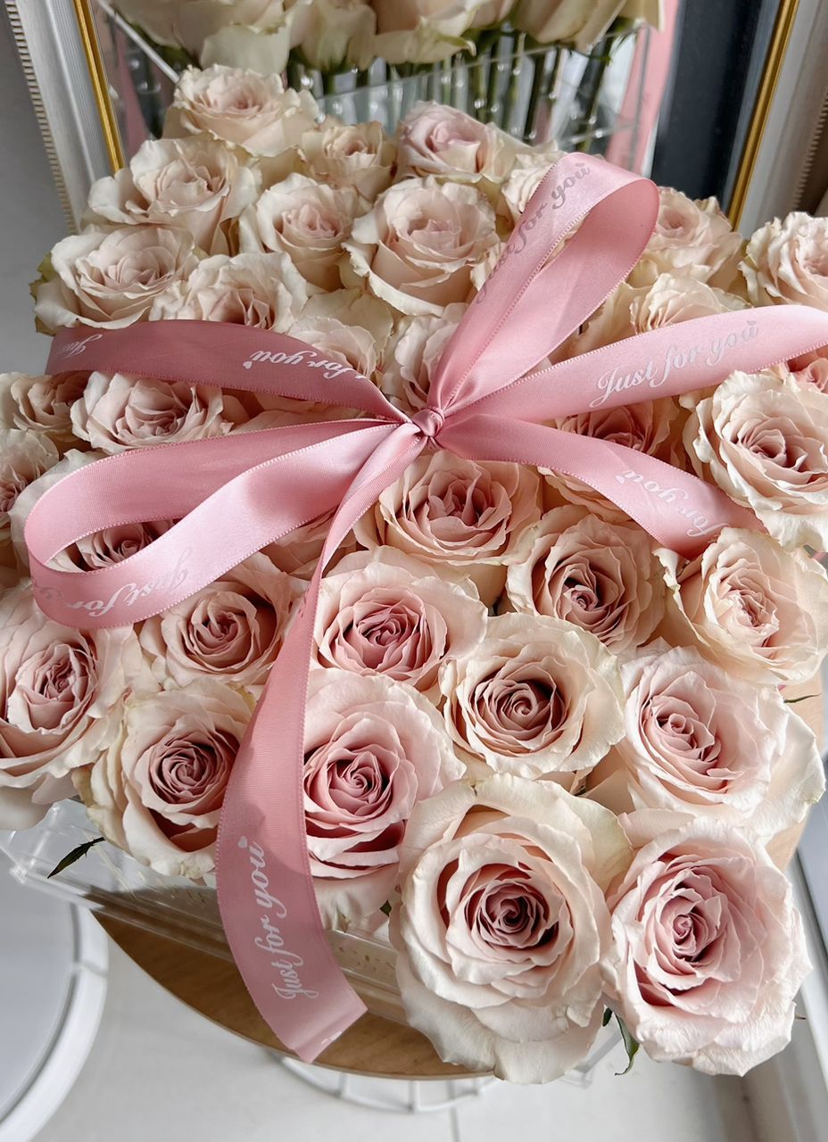 Acrylic Box Size - (25.5x25.5x17cmh) Contains 35 pink roses. Indulge in the pure allure of our latest designs. This enchanting floral arrangement combines the timeless beauty of delicate roses presented in an elegant acrylic box, creating a stunning visual masterpiece. “She draws people to her as if they are pulled by a magnetic force.” This timeless acrylic boxed rose is a symbol of gentle and magnetic personality.